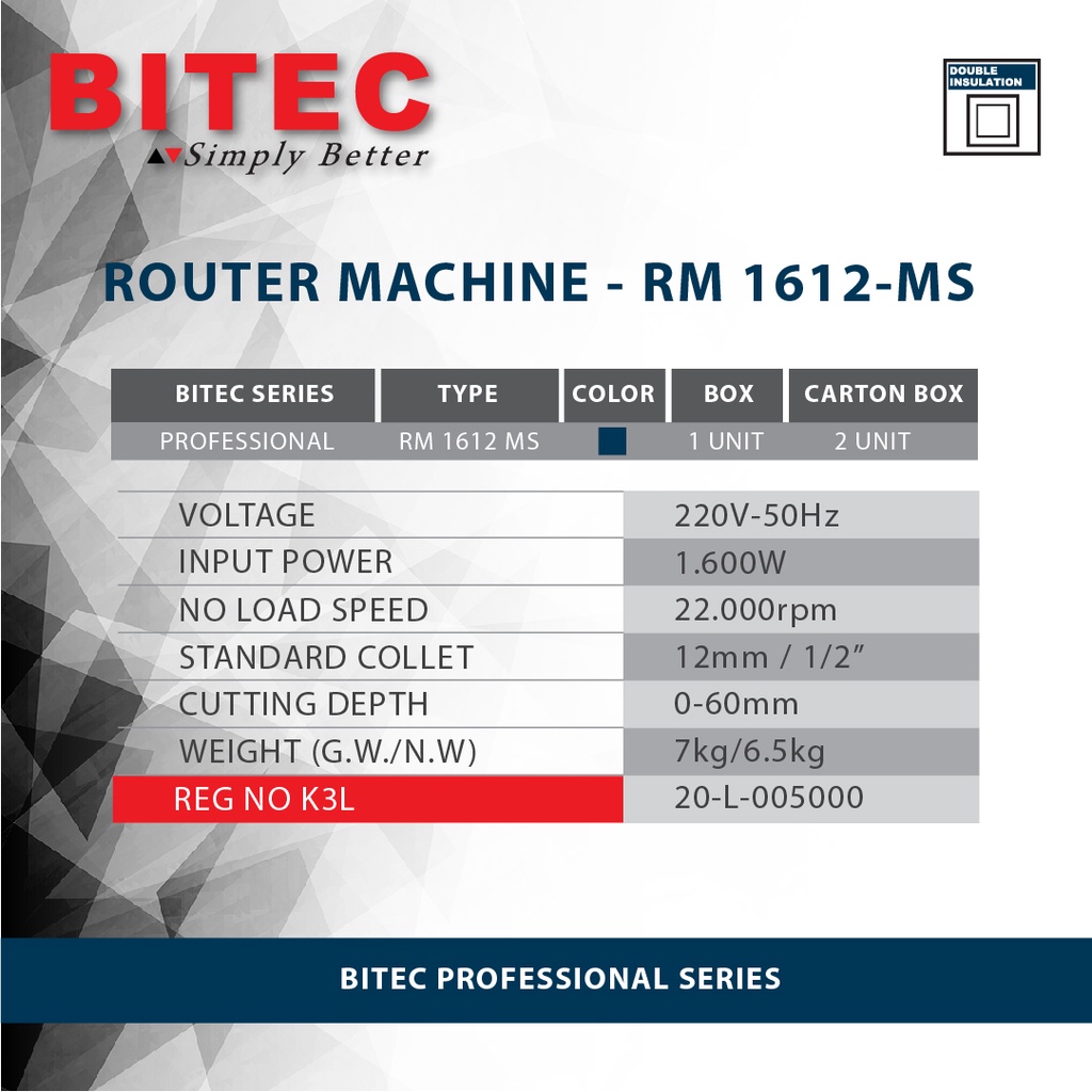 BITEC - MESIN POTONG PUTAR / ROUTER MACHINE - RM 1612-MS - GARANSI RESMI 1 THNBITEC - MESIN POTONG PUTAR / ROUTER MACHINE - RM 1612-MS - GARANSI RESMI 1 THNBITEC - MESIN POTONG PUTAR / ROUTER MACHINE - RM 1612-MS - GARANSI RESMI 1 THN