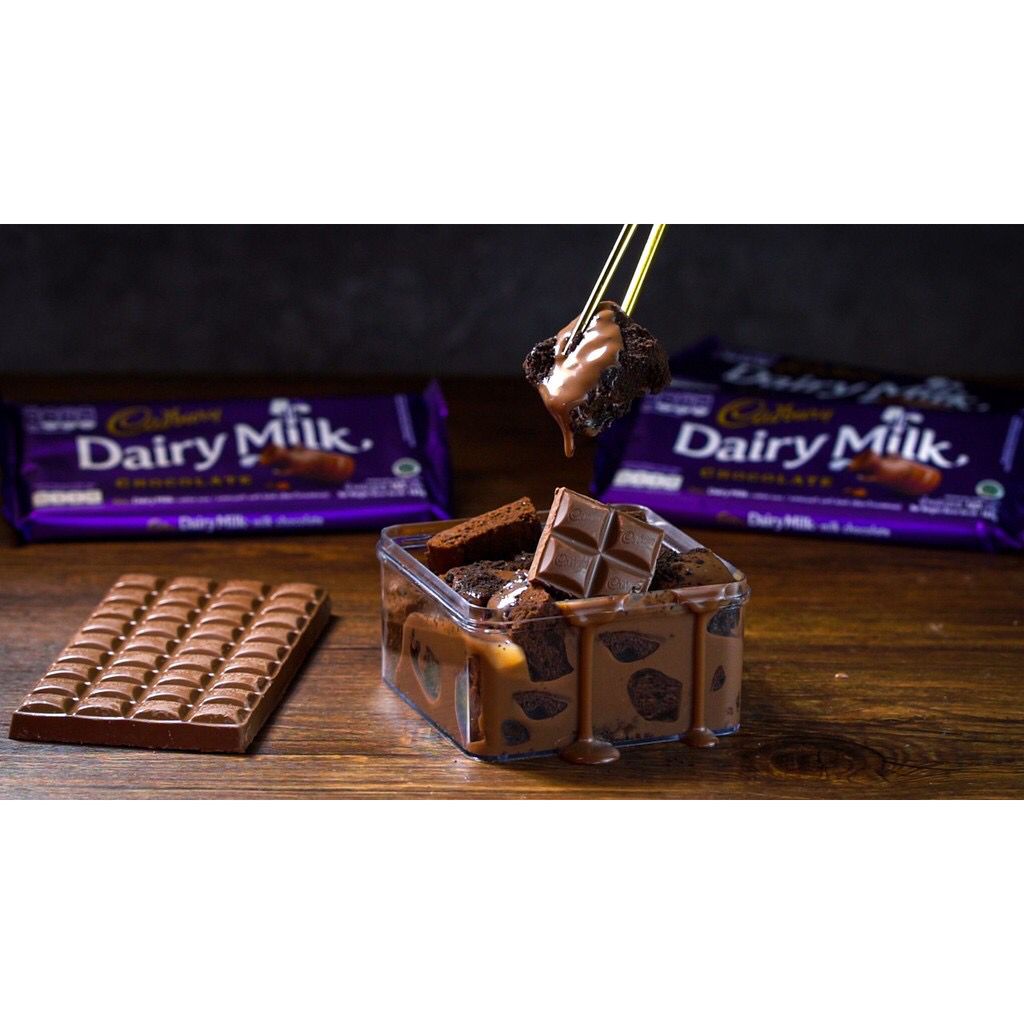 Fudge Brownies spesial yang terbuat dari dark coklat dengan tekstur luar yang renyah dan siraman chocolate Cadbury yang melimpah.