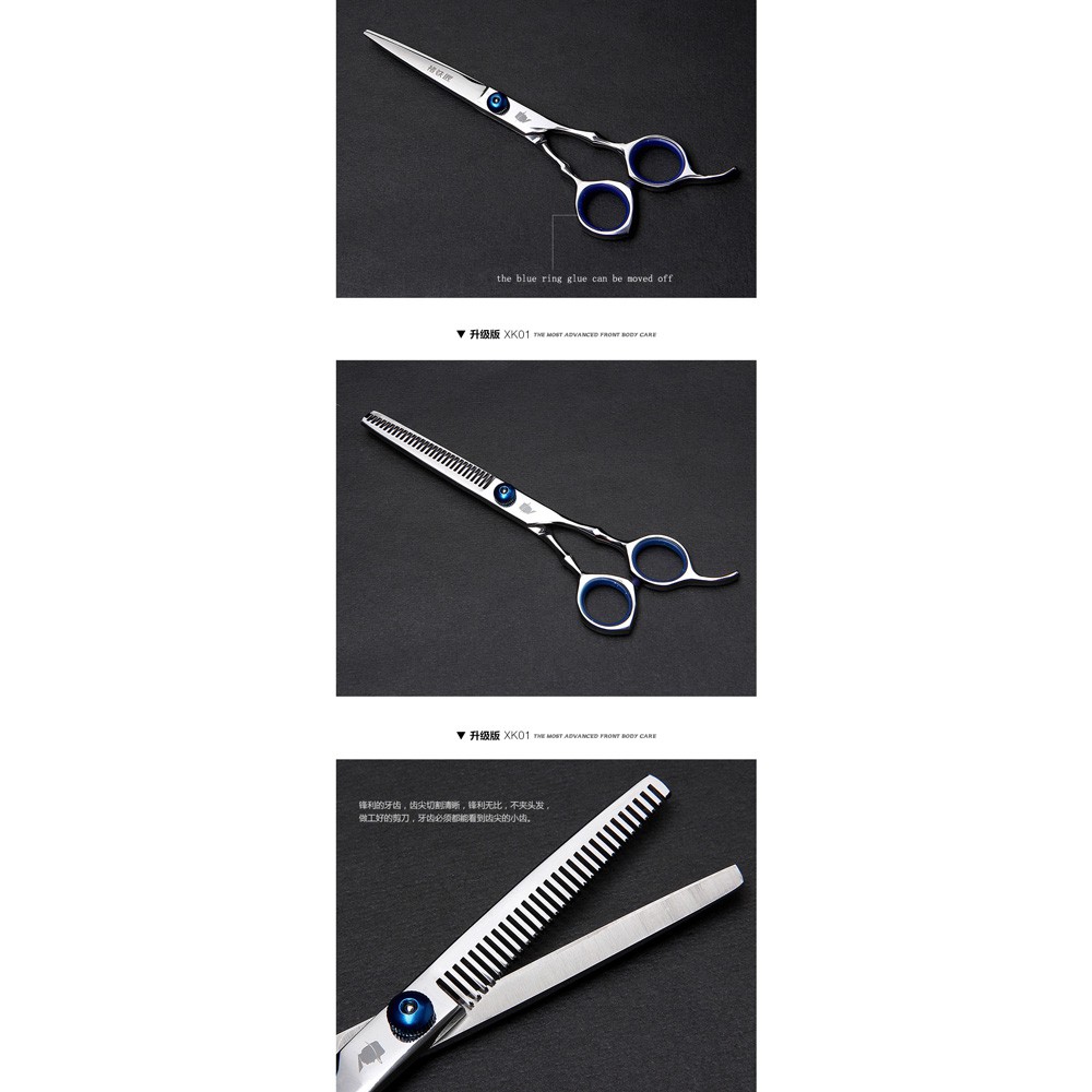 Satu set perlangkapan gunting rambut ini memiliki semua yang Anda butuhkan untuk menggunting rambut dan menata rambut. Wajib dimiliki untuk para hairstylis dan salon. Anda akan mendapat gunting flat, gunting thinning, sisir, microfiber cloth dan sebuah botol kecil.