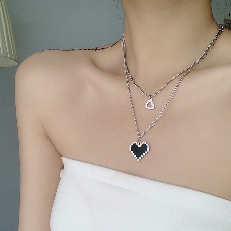 Detail Black Mosaic Love Necklace Peach Heart Pendant Double Necklace