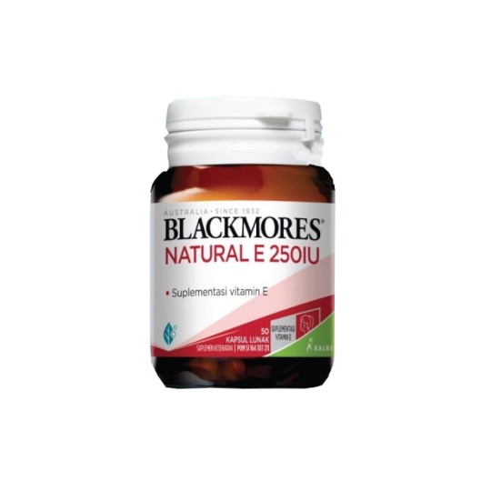 Blackmores Natural E 250 IU merupakan sumber alami antioksidan Vitamin E yang bertahan lebih lama dalam tubuh dan 2x lebih efektif. Vitamin E juga mengurangi oksidasi dari kolesterol LDL. Blackmores Natural E 250 IU tersedia dalam kemasan botol berisi 50 kapsul.