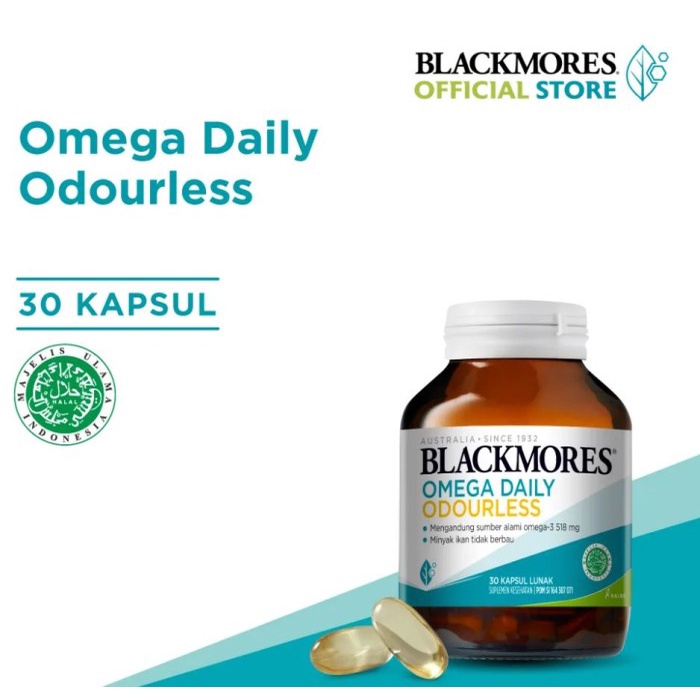 Blackmores Omega Daily Odourless : - Diekstrasi dari ikan laut dalam dan merupakan sumber alami omega-3 - Membantu mmelihara kesehatan - Minyak ikan tidak berbau