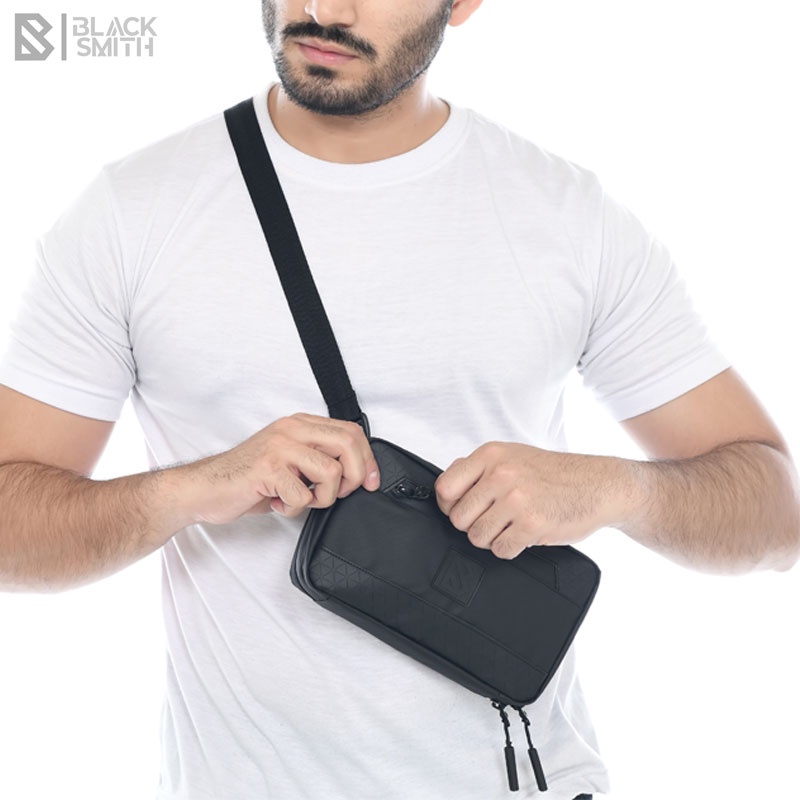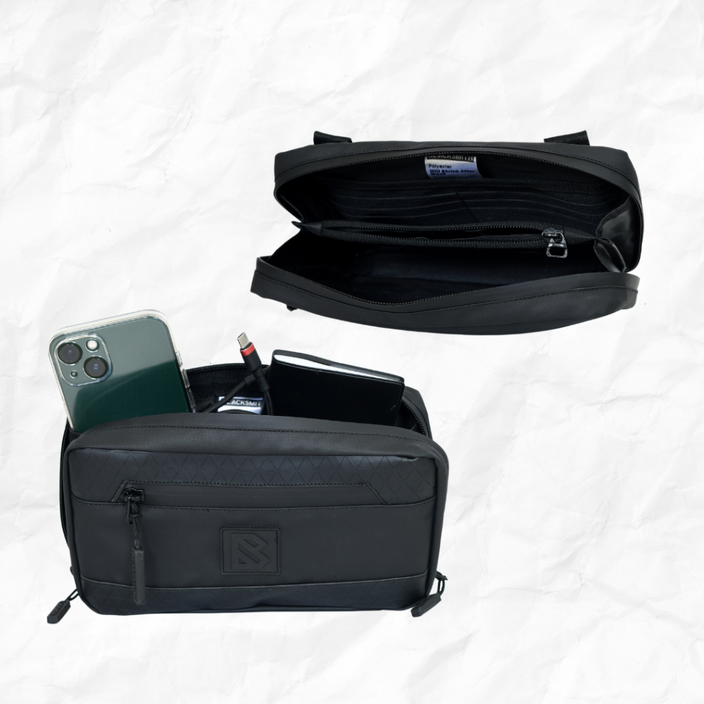 • Bahan Luar bimo waterproof ( Tahan air ) intensitas ringan • Bahan Dalam Nylon 420 D • Seleting Waterpoof (Tahan Air) • Puller Ykk • Tali Wabing Tangan 18 Cm • Wabing Selempang Adjustable Max 125 Cm • Wabing Belakang 20 Cm • Size : P X L X T = 23 Cm X 5 Cm X 14 Cm