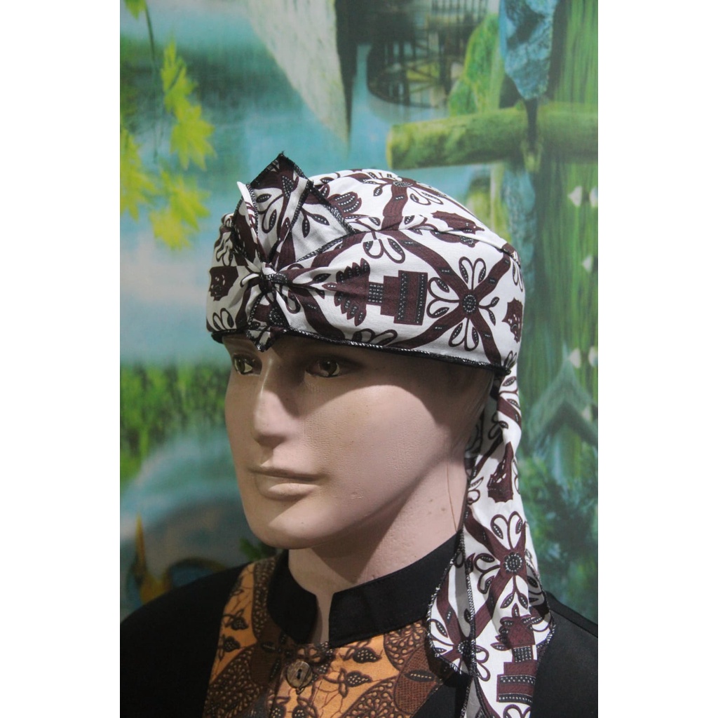 Detail blangkon iket kepala sunda jawa batik tradisional dewasa anak atas tutup (merah)