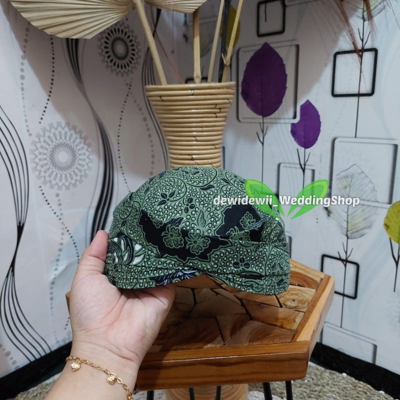 Blangkon Solo Jarik / Bahan Premium - Motif Wahyu Tumurun Hijau