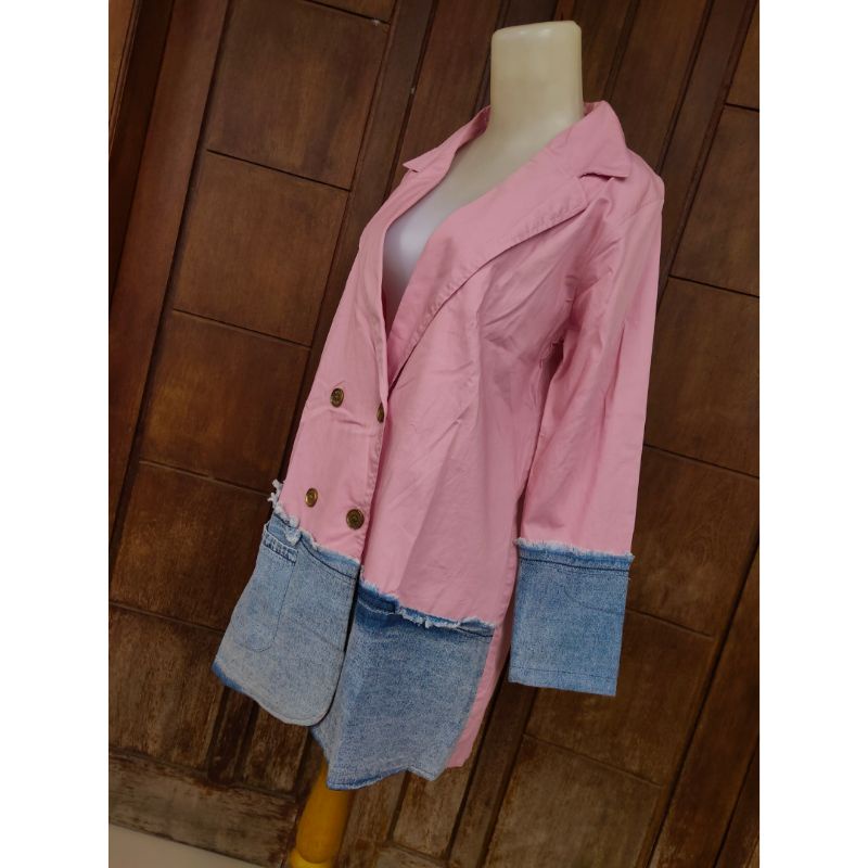 Pakaian Wanita > Jaket, Mantel, & Rompi > Blazer > Blazer Katun mix Jeans Wash Rawis Premium Korean Style