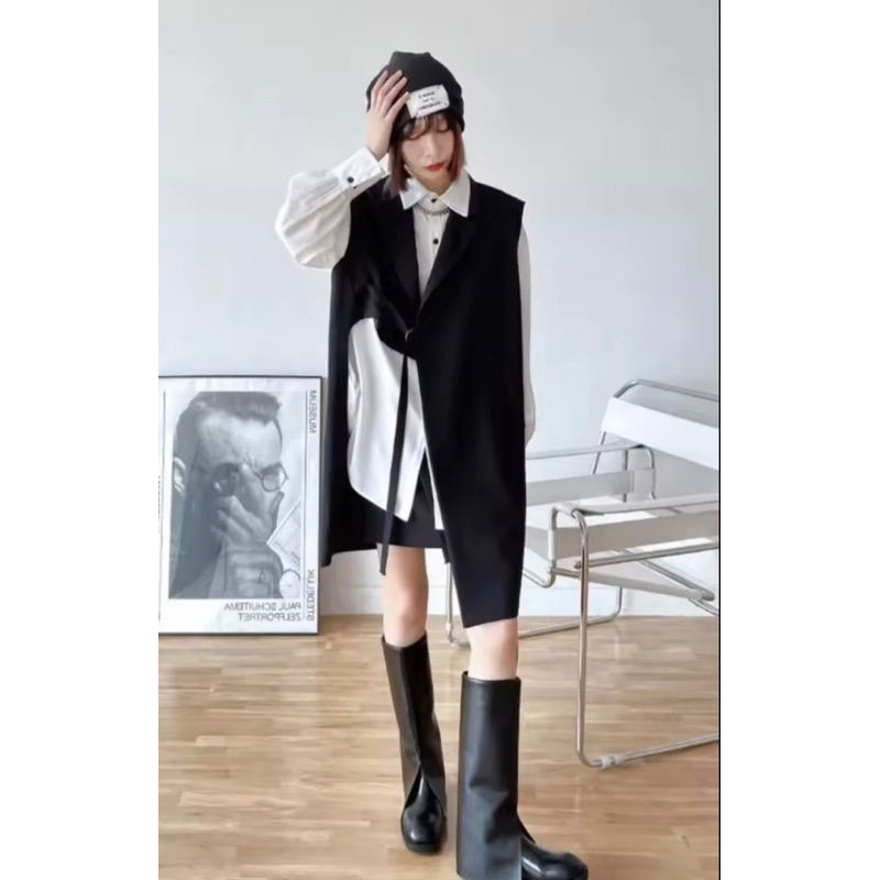 Detail Blazer Zigzag polos asimetric harajuku / vest korean style / rompi hitam korea