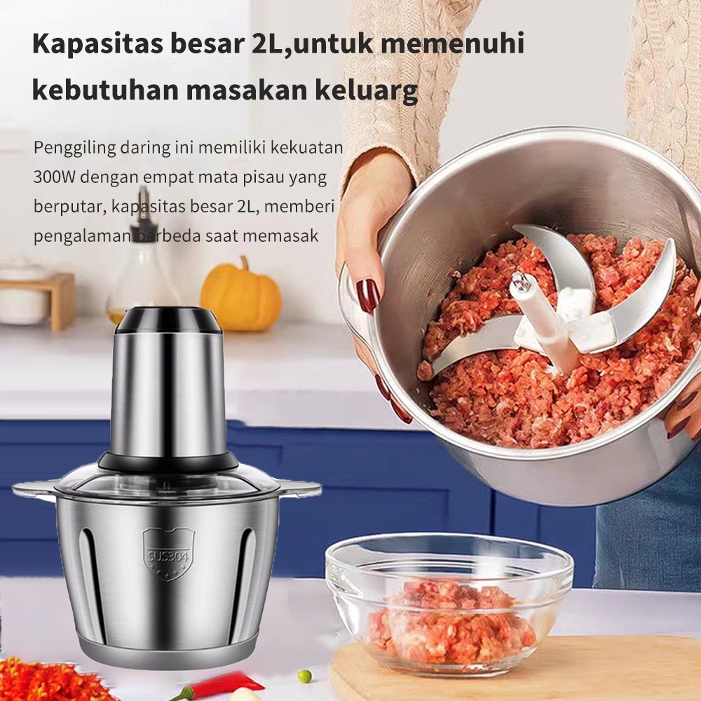Fitur: 【Stainless Steel】 Food chopper terbuat dari stainless steel, kuat, tahan lama, dan lebih ringan dari kaca, serta mudah dibersihkan dan tidak akan pecah karena jatuh atau terbentur. 【Memotong dan Mencampur Cepat】Dengan motor bertenaga 300W, penggiling daging elektrik dapat dengan mudah memotong dan mencampur jenis daging, buah, dan sayuran dalam hitungan detik. 【2 Mode】 Penggiling makanan ini dilengkapi dengan 4 bilah baja tahan karat dan 2 mode untuk dipilih. Anda dapat memilih mode yang paling sesuai dengan makanan yang ingin Anda siapkan. 【Kapasitas 2L】 Pengolah makanan elektrik memiliki kapasitas 2L terbesar. Itu berarti Anda dapat memotong semangkuk besar daging atau sayuran sekaligus. Selain itu, dilengkapi dengan penutup debu untuk mencegah cipratan. 【Penggunaan Luas】Anda dapat menggunakannya untuk memotong atau menggiling berbagai bahan, seperti bawang, daging, ham, bawang putih, bawang merah, bumbu kecil. Sangat nyaman untuk membuat bakso, pai daging, sereal beras, milkshake atau menyiapkan makanan untuk hewan peliharaan Anda.