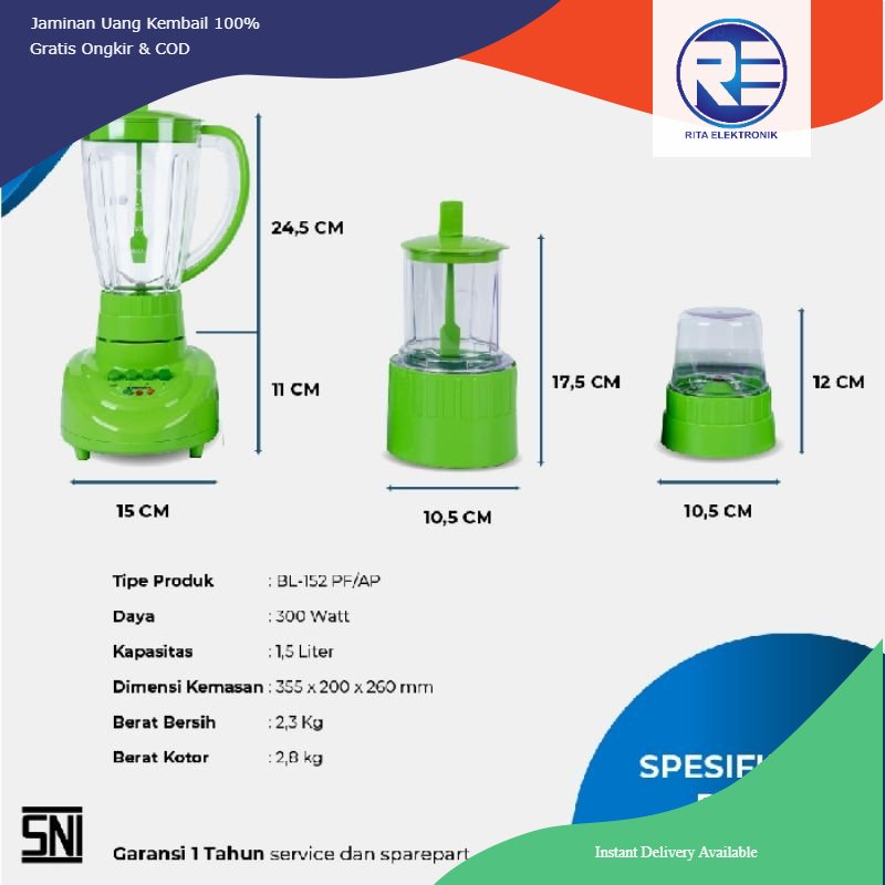Detail Blender Miyako BL 152 PF AP (Plastik) / BL 152 GF (Kaca)