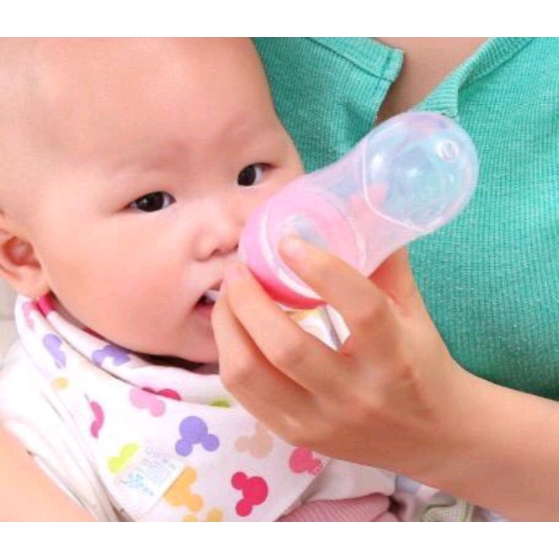 💎Warna: biru, merah muda, kuning, hijau 💎Bahan botol: Silikon food grade, BPA FREE 💎Bahan sendok: polypropylene PP, tahan suhu tinggi 108 ℃ 💎Ukuran: 90ML