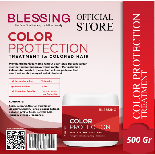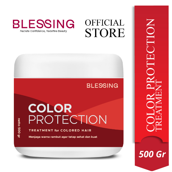 BLESSING Treatment COLOR PROTECTION adalah product yang dirancang untuk membantu : 1.Menjaga rambut agar tetap sehat dan kuat. 2.Mudah Ditata. 3.Mengurangi / menjaga dari panasnya hairdrayer,catok dan sinar matahari.