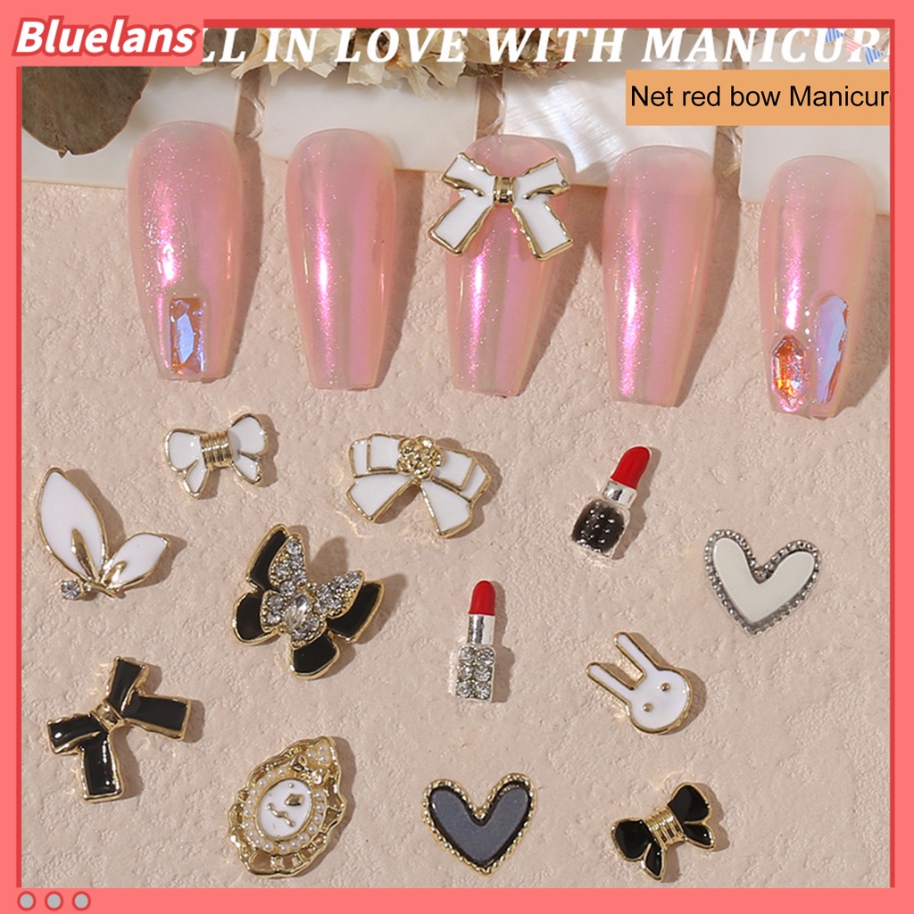 Detail [BLM] 10pcs Manicure Decor Tiga Dimensi Bersinar Gloss Tinggi DIY Alloy Sedikit Harum Gaya Busur Camellia Hiasan Kuku Salon Kuku Supply