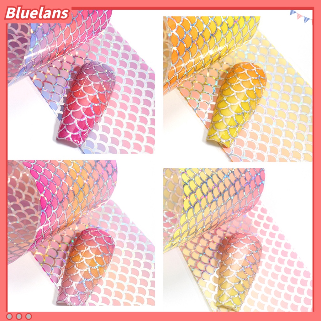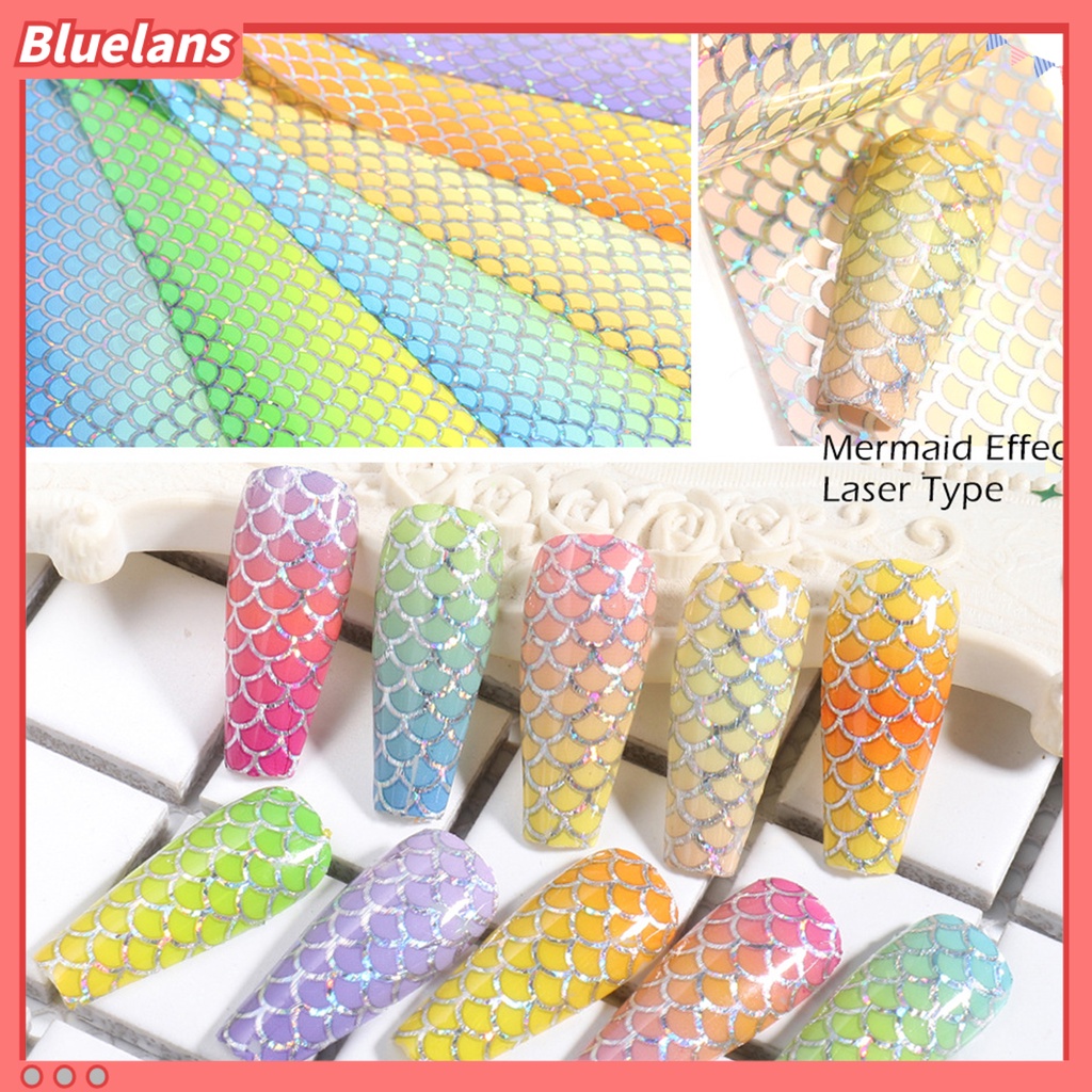 Detail [BLM] 10pcs /Set Nail Mermaid Decals Squama Style DIY Colorful Nail Foil Sisik Ikan Gradien Transfer Untuk Manicure
