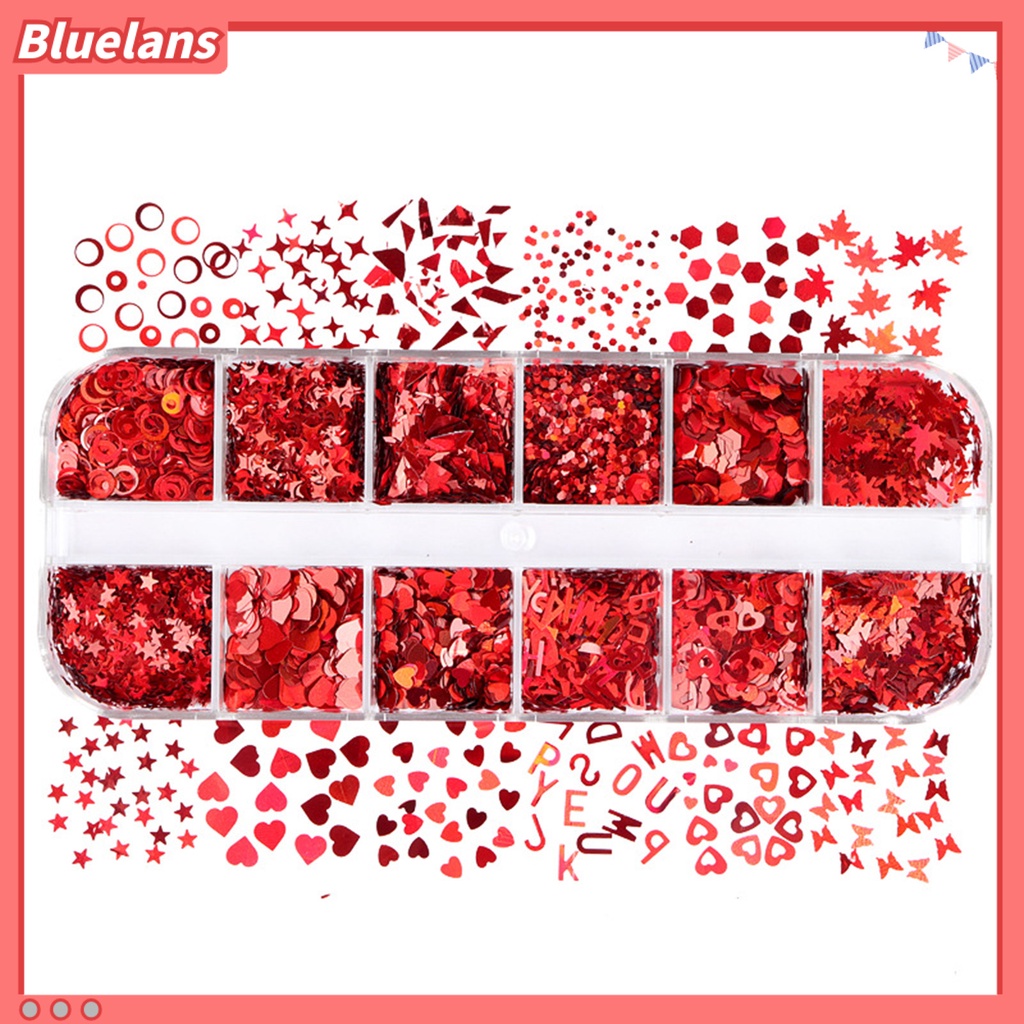Perawatan & Kecantikan > Perawatan Kuku > Kuku Palsu > [BLM] 1kotak Paku Payet 12kisi Aneka Bentuk Mini Tipis DIY Nail Art Cinta Hati Bunga Manicure Glitters Dekorasi Untuk Hari Valentine