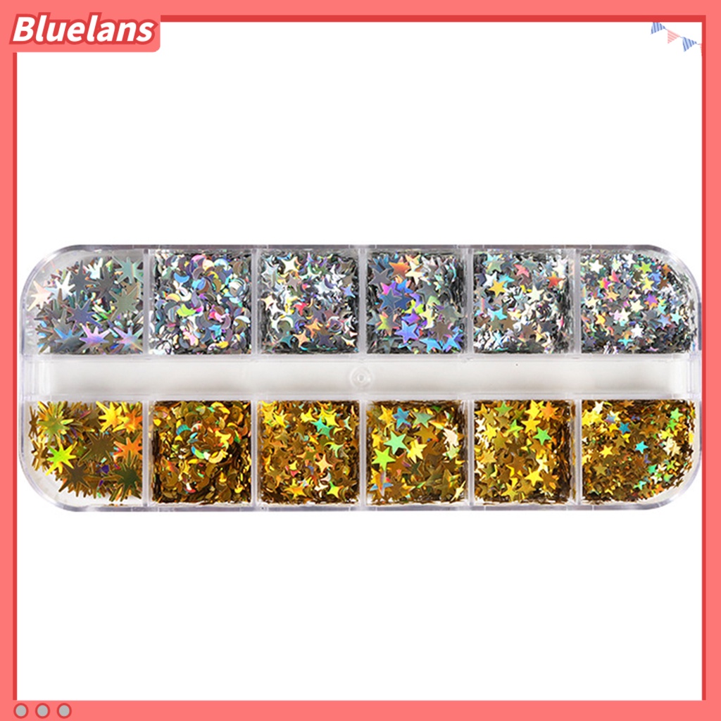 [BLM] 1kotak Payet Kuku Berkilau Bentuk Kreatif Efek Visual Mengkilap Ultra-Tipis Tidak Luntur 12kisi Gaya Bulan Bintang Glitter Flakes Ornamen Untuk Salon Kuku