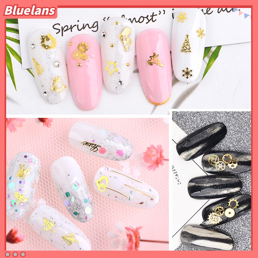 Detail [BLM] 2kotak Logam Berongga Keluar Natal Daun Gear Irisan Nail Art Sequin Decals