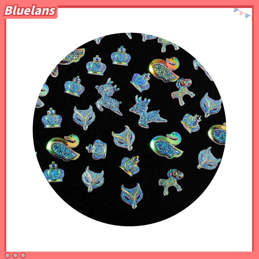 Detail [BLM] 30pcs /Pack Dekorasi Kuku Mahkota Bentuk Hewan Flat Bottom Resin Nail Art Rhinestones Jewelry Untuk Desain Kuku