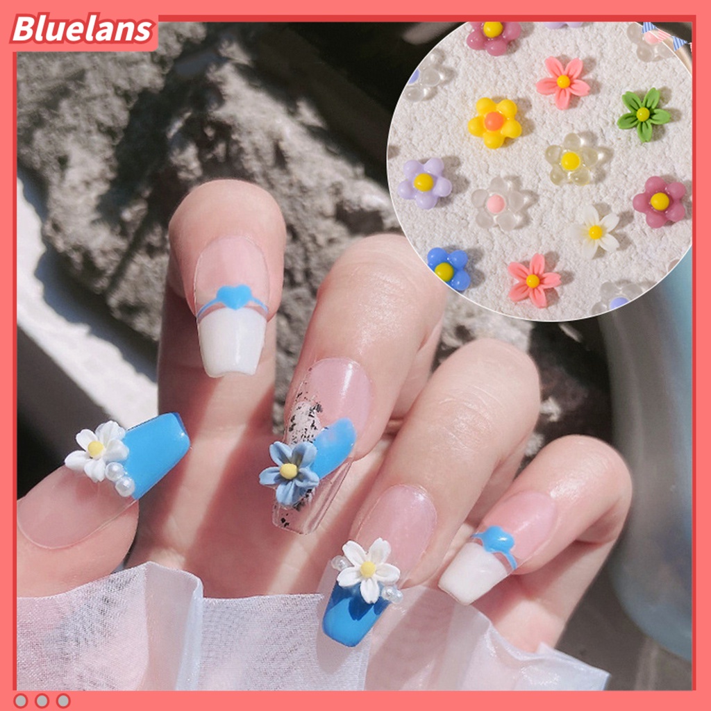 Detail [BLM] 50pcs Dekorasi Kuku Bentuk Indah Tahan Air Resin Berwarna Cerah 3D Mini Berbentuk Bunga Nail Charms Untuk Wanita