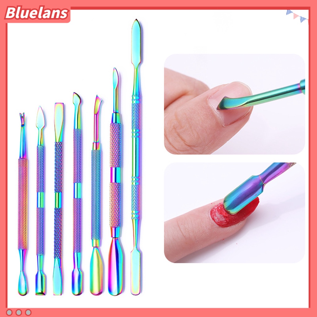 Detail [BLM] Pendorong Nail Art Kepala Ganda Menghilangkan Kulit Mati Alat Manikur Gel Polish Remover Pendorong Kutikula Bahan Stainless Steel Untuk Penggunaan Di Rumah
