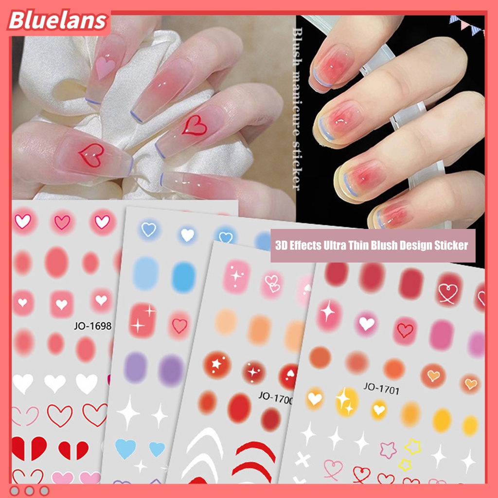Perawatan & Kecantikan > Perawatan Kuku > Kuku Palsu > [BLM] Stiker Kuku Efek 3D Romantis Ultra Tipis Blush Design Sticker Pink Heart Love Transfer Untuk Anak Perempuan