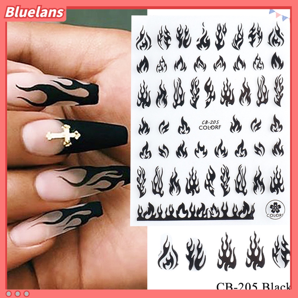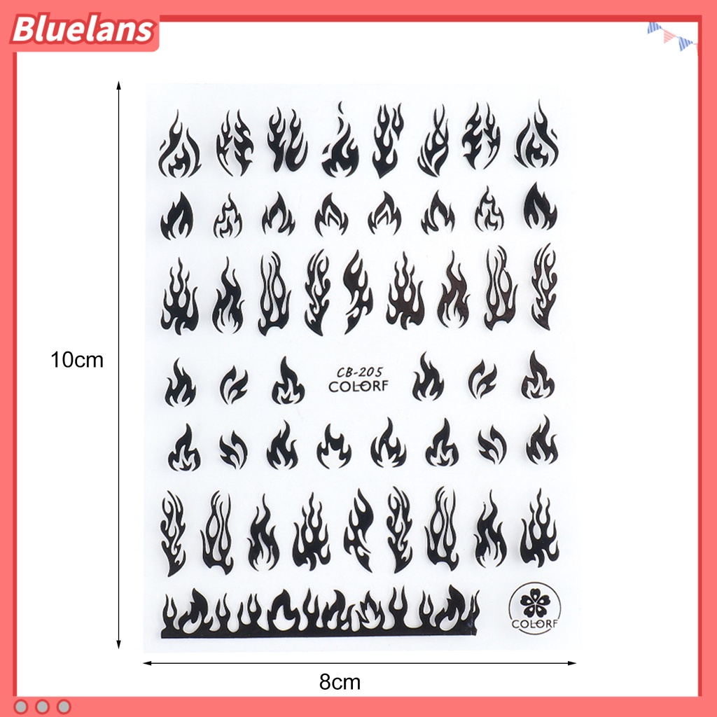 Detail [BLM] Stiker Kuku Tidak Luntur Efek 3D Ultra Tipis Hologram Flame Slider Musim Panas Decals Untuk Manicure