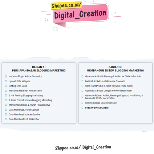 Ecourse yang mengupas dengan detail cara membangun sistem promosi online menggunakan blog. Ecourse ini membahas teknik blogging dari materi yang sangat dasar sekali tentang blog sehingga sangat cocok untuk Anda yang masih Pemula.