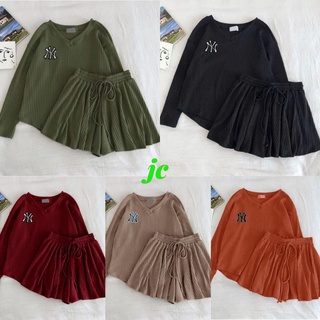 JCZR - St Lesti Newyork / Stelan Wanita Santai / Set Wanita Celana Pendek Lengan Panjang Terbaru