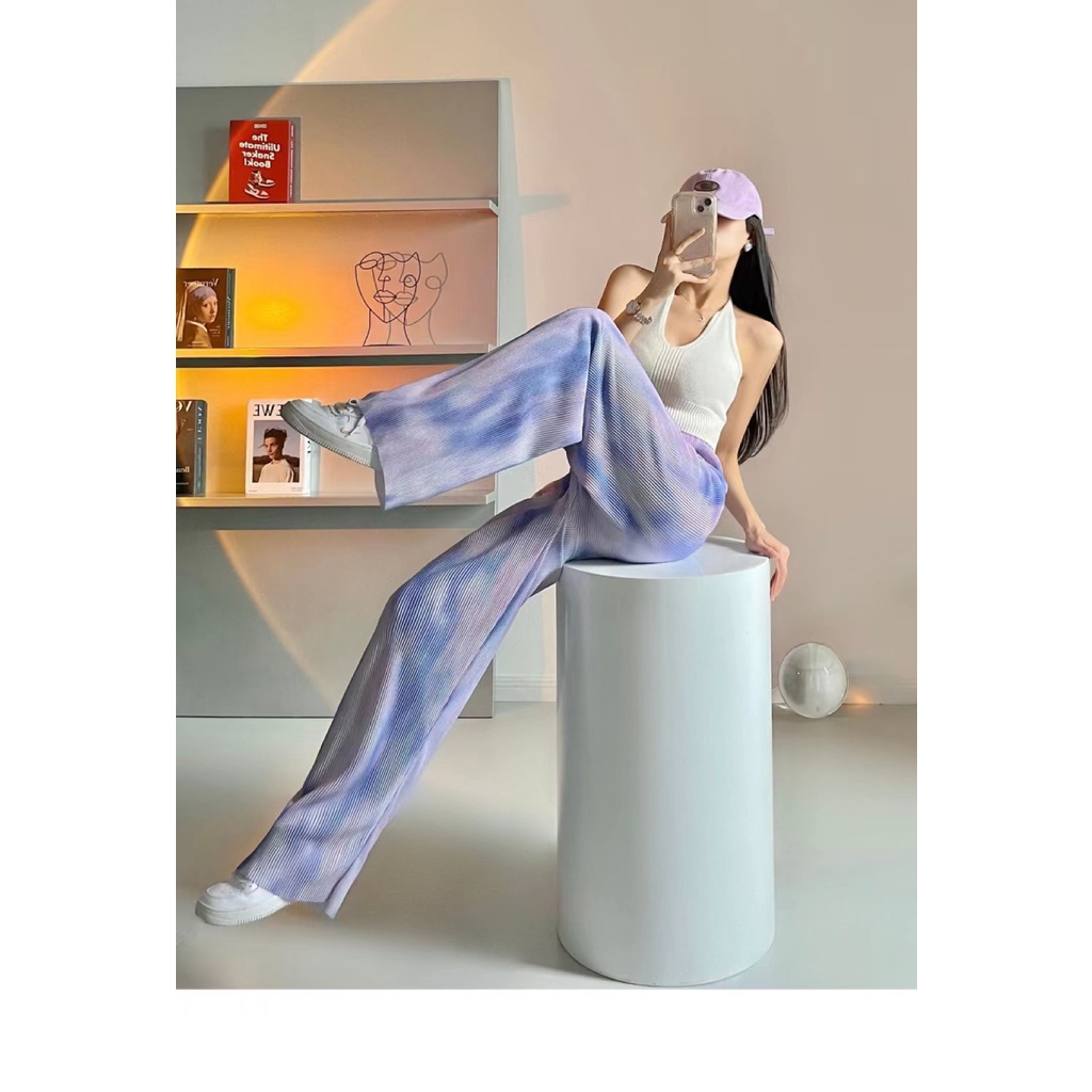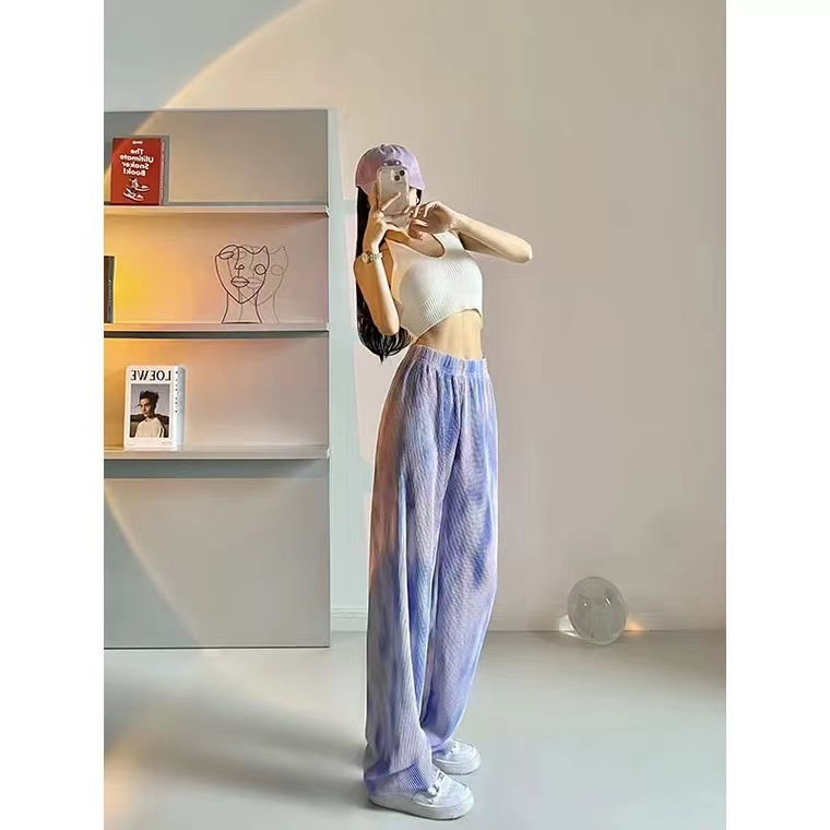 Your browser does not support the video tag.Video perkenalan produk 【Blossom】Casual Tie-dye Wide-Legged Pants 2424. Sumber: Shopee.