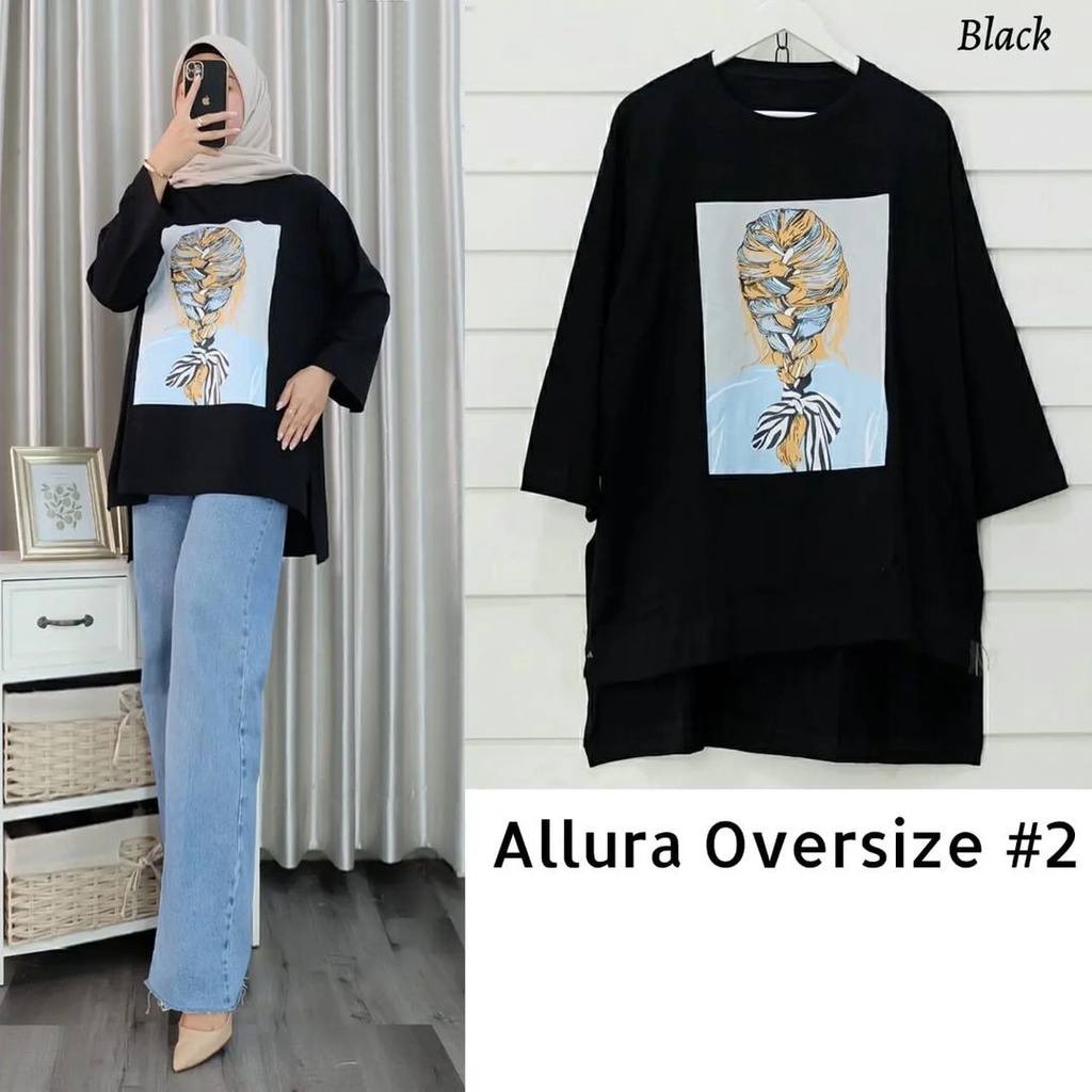 Blouse Wanita korea ALLURA Blouse #2 Bahan Kaos katun combed Aplikasi sablon Ukuran s - xxxl Kaos oversize wanita Baju atasan wanita korean style Blouse wanita jumbo warna hitam