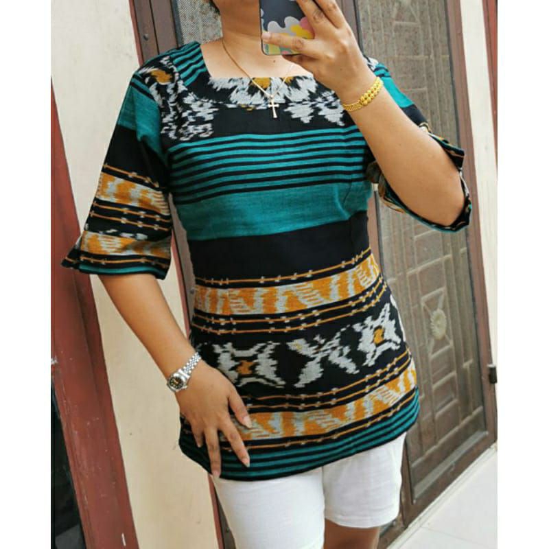 Pakaian Wanita > Atasan > Kemeja & Blouse > blouse atasan tenun wanita baju kantor/ tenun motif