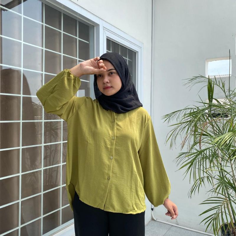Detail Blouse Balon Kemeja Crinkle katun atasan wanita termurah lengan panjang