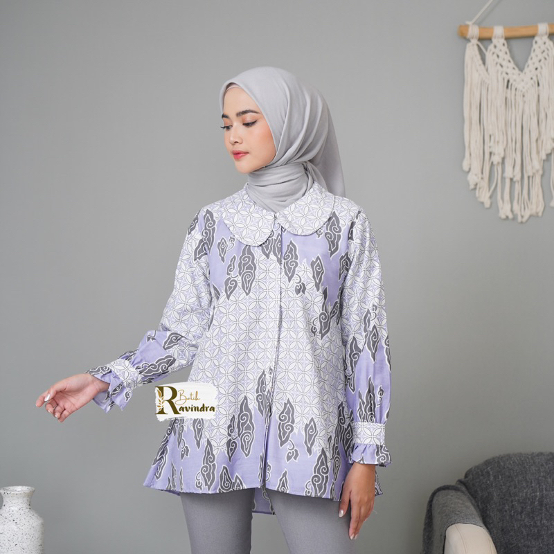 Blouse batik printing bahan katun, kancing depan full atas sampai bawah