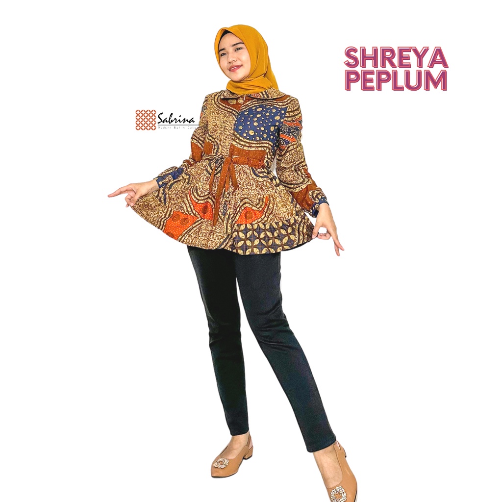 Detail Blouse Batik Shreya Atasan Peplum Batik Kerja Kantor Wanita Modis Print Klasik Kekinian