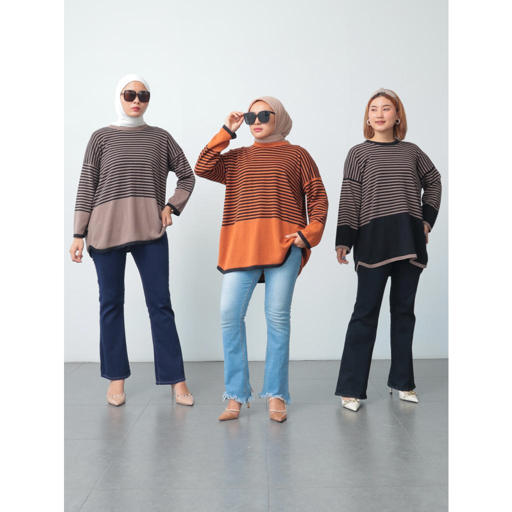 Video perkenalan produk Blouse Knit Stripe Oversize - 2301.01.024. Sumber: Shopee.