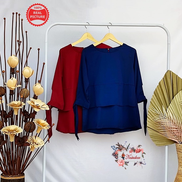 Blouse Layer Depan Wanita Kekinian Baju Busana Terbaru Lengan Tangan Tali Polos Kancing Belakang Baju Atasan Tumpuk High Quality