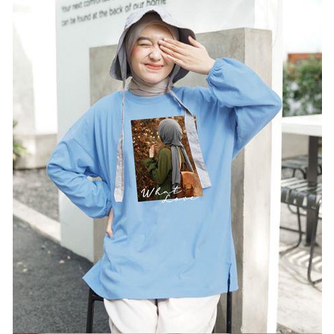 BLOUSE OVERSIZE LENGAN PANJANG KARET LD 130CM DTF HIJAB WHAT