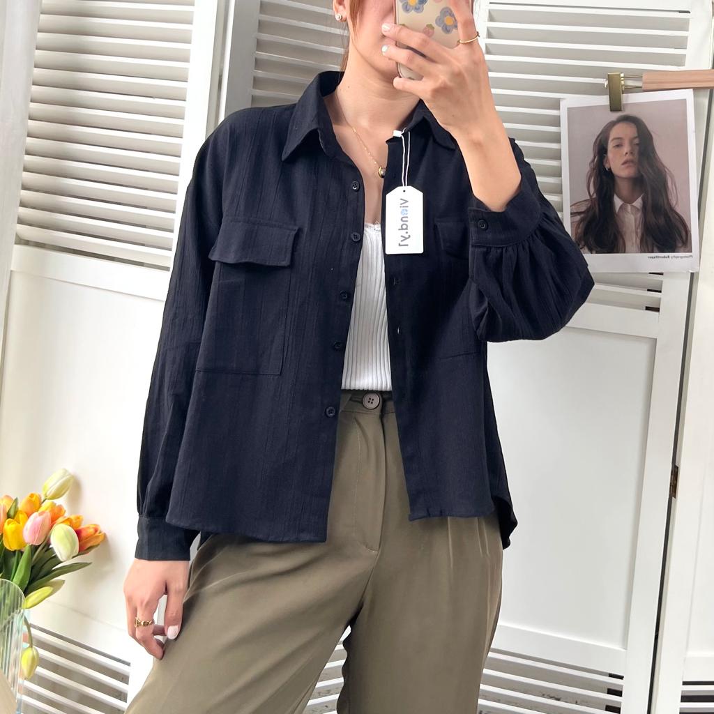 Detail Blouse Pocket 2 Wanita Lengan Panjang / Atasan Kemeja Cewek Korean Style B02