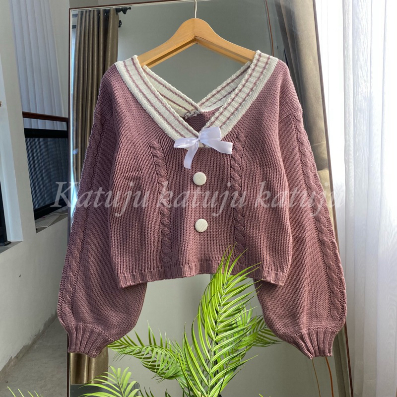 *Atasan model Normal size dengan kerah V-neck, motif Cable, aksen Pita dan Kancing (mati), serta lengan model Balon *Bahan full rajut 3 gate nyaman dipakai *Kualitas barang TERBAIK. Pasti udah lebih bagus dan rapih *Berat / 1 pcs 375 gram *ALL SIZE *Masuk mulai bb 40 kg sampai dengan 60 kg *Masuk mulai tb 145 sampai dengan 160