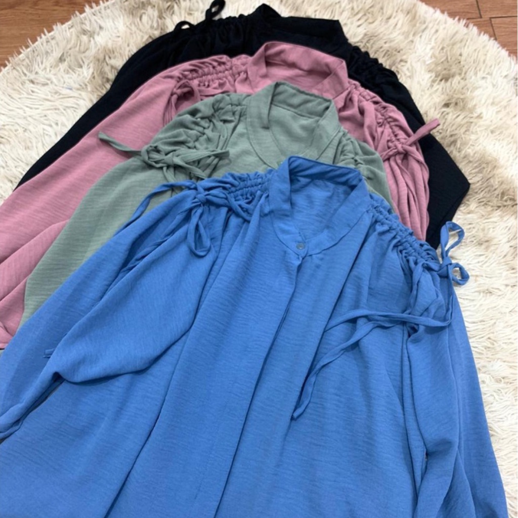 🔸DETAIL : ✔️ Blouse Berbahan Kain Crinkle Airflow Premium ✔️ pergelangan Tangan Karet ✔️ Aksen Serut di Bahu ✔️ Kancing Depan Aktif Busui friendly