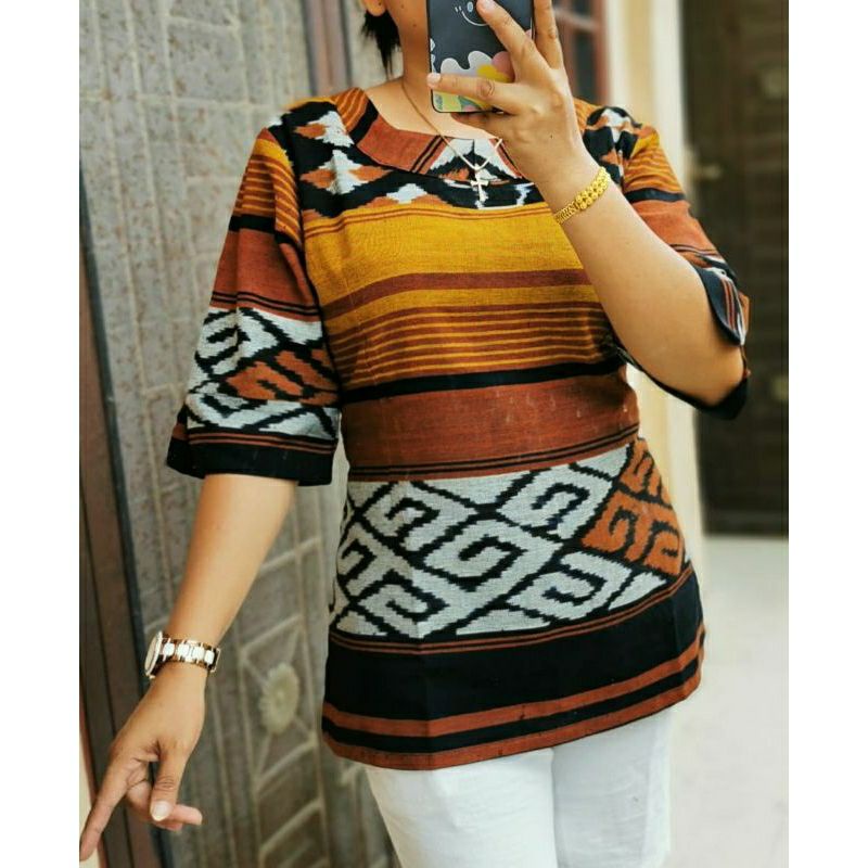 Detail BLOUSE TENUN ATASAN KERJA WANITA, BAJU TENUN MOTIF