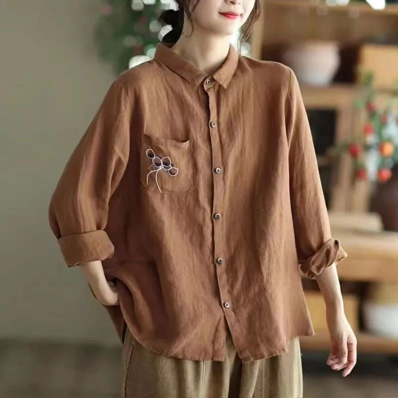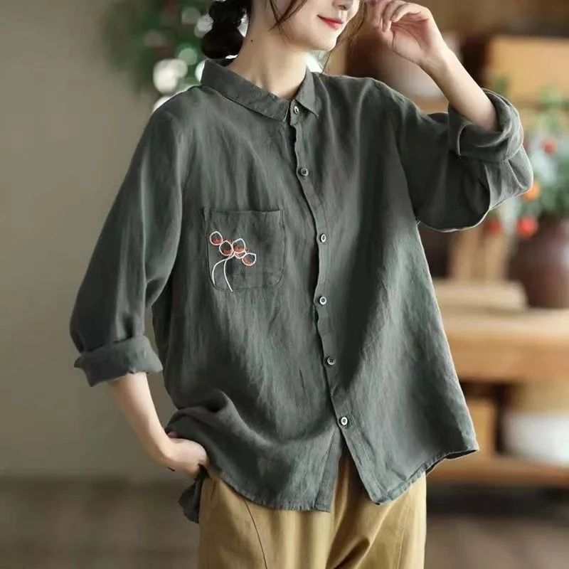 BLOUSE WANITA DAMIRA BAHAN LINEN MIX BORDIR LD 110 PT 55 PB 69 CM BLOUSE OVERSIZE XXL //KEMEJA WANITA OVERSIZE // ATASAN WANITA KOREAN STYLE TERBARU 2023