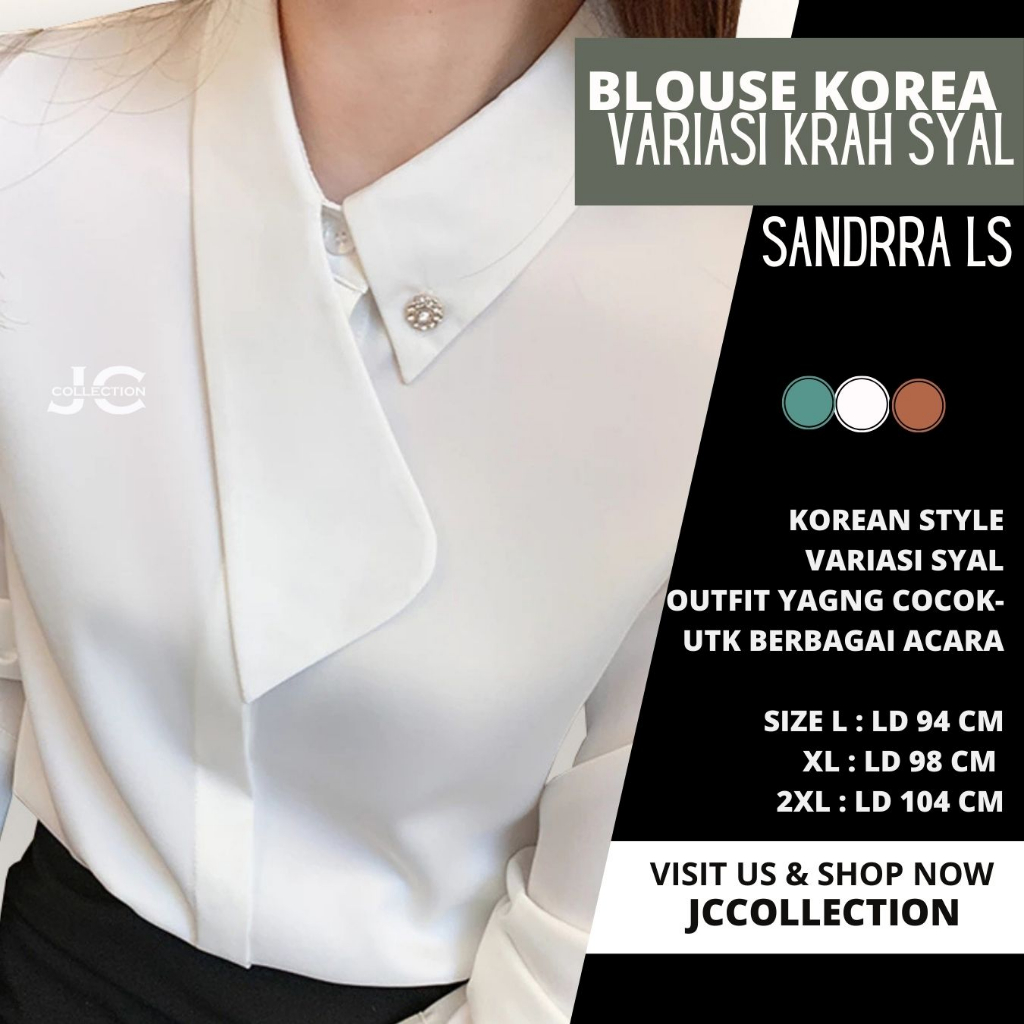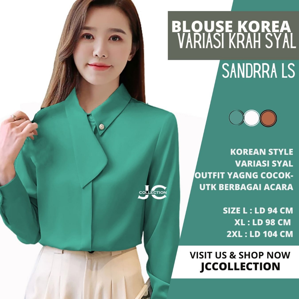 Blouse Wanita Korea Oversize / Kemeja Wanita Jumbo lengan panjang Gaya Korea variasi krah model terbaru Shandrra LS - JCCollections