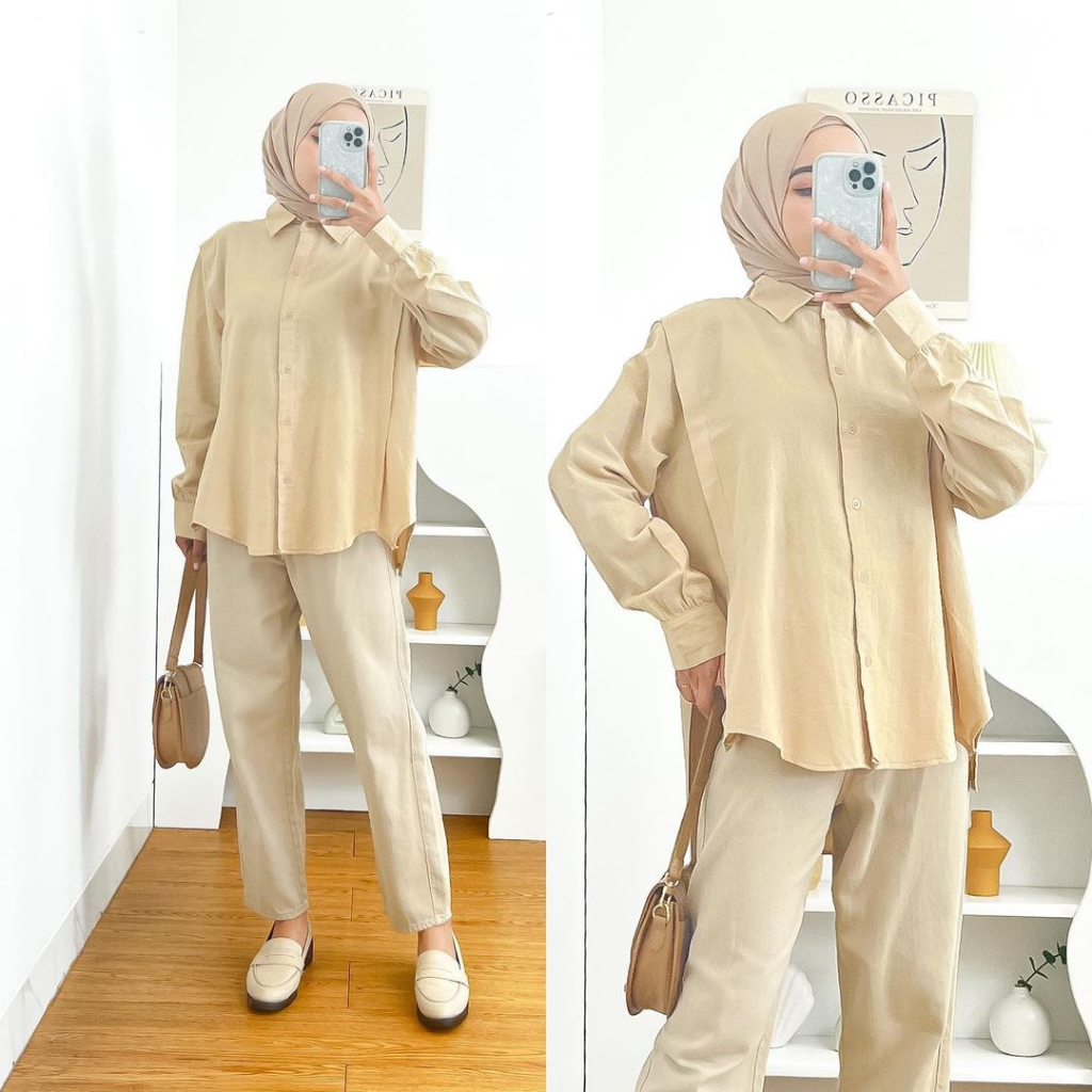 Fashion Muslim > Atasan Muslim Wanita > Kemeja, Blouse, & Dalaman Blouse > BLOUSE WANITA MELLY BLOUSE BP BAHAN LINEN LD 110 CM PB DEPAN 63 PB BELAKANG 73 CM MELLY BLOUSE BP BAHAN LINEN LD 110 CM PB DEPAN 6 PB BELAKANG 73 CM BLOUSE KOREAN STYLE / KEMEJA OVERSIZE WANITA / BAJU BLOUSE ATASAN WANITA TERBARU 2023