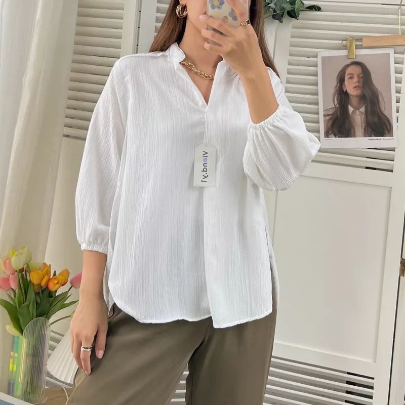 Pakaian Wanita > Atasan > Kemeja & Blouse > Blouse Wanita Outer Korean Style Lady Crush / Livia Blouse Wanita Bahan Lady Crush / Kemeja Wanita Oversize