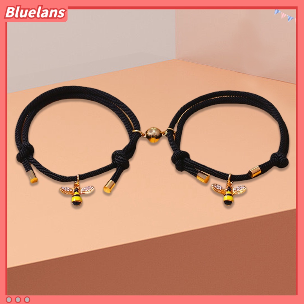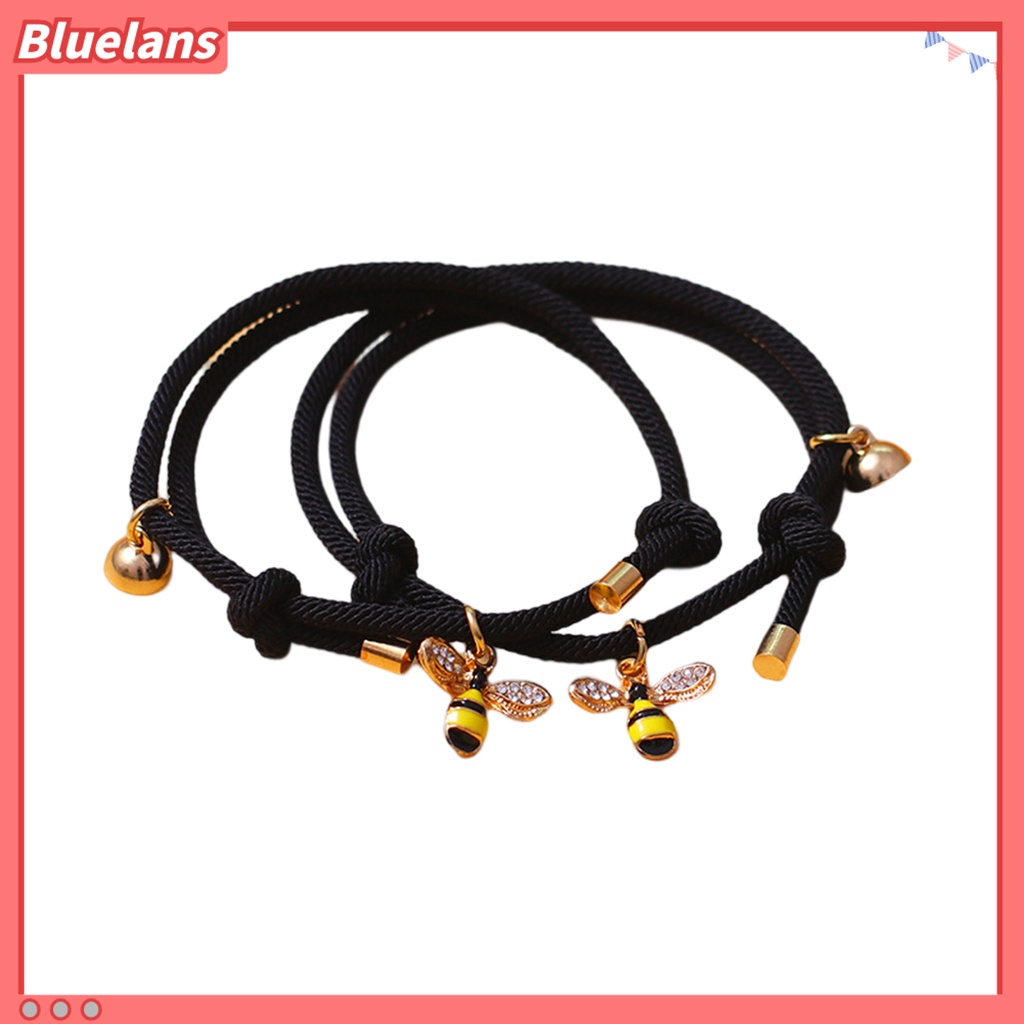Aksesoris Fashion > Gelang Tangan & Bangle > [BLS] 1pasang ic Gelang Trendi ic Ball Adjustable Charming Wear Resistant Everyday Wearing Alloy Rhinestone Inlay Little Bee Couple Bracelets Hadiah Hari Valentine