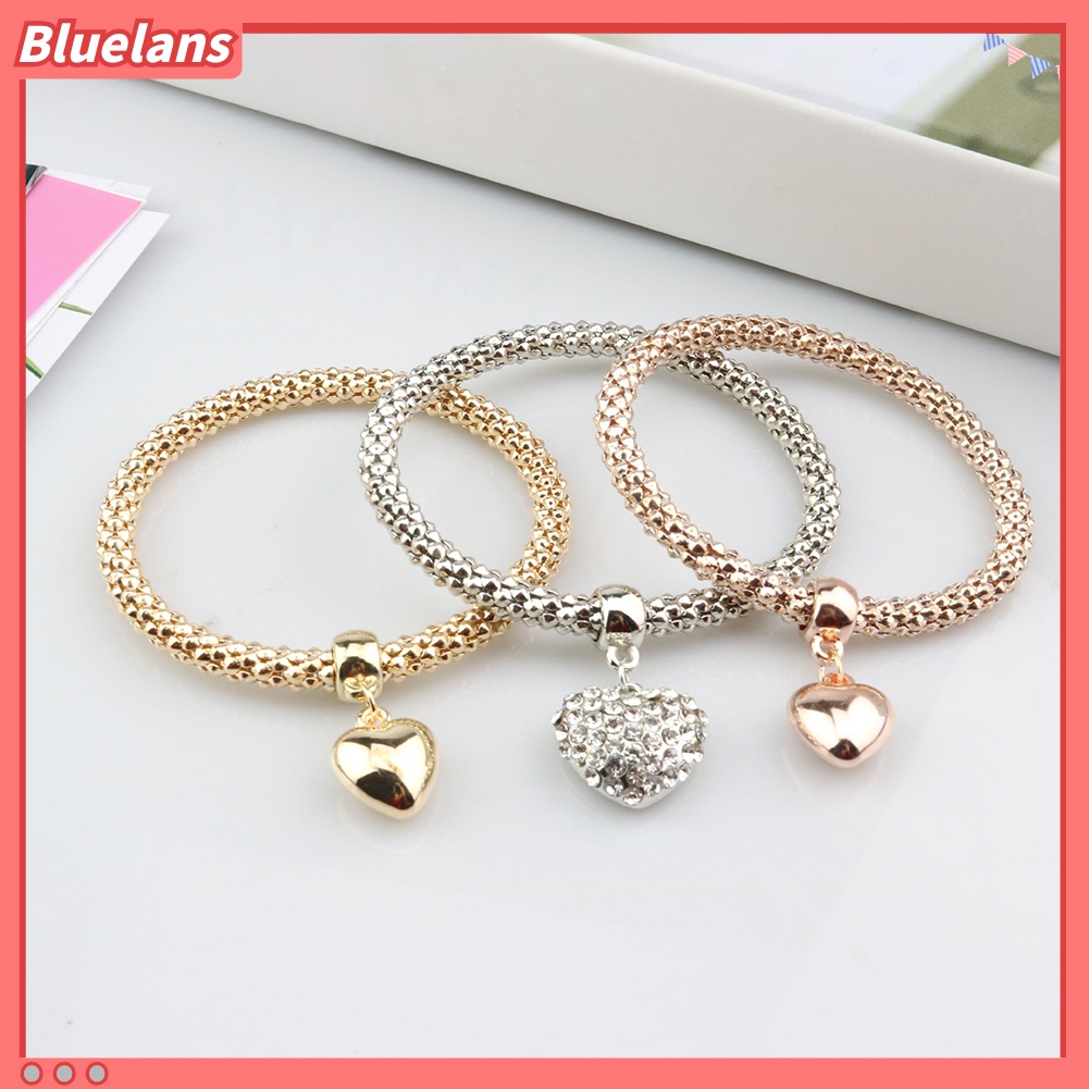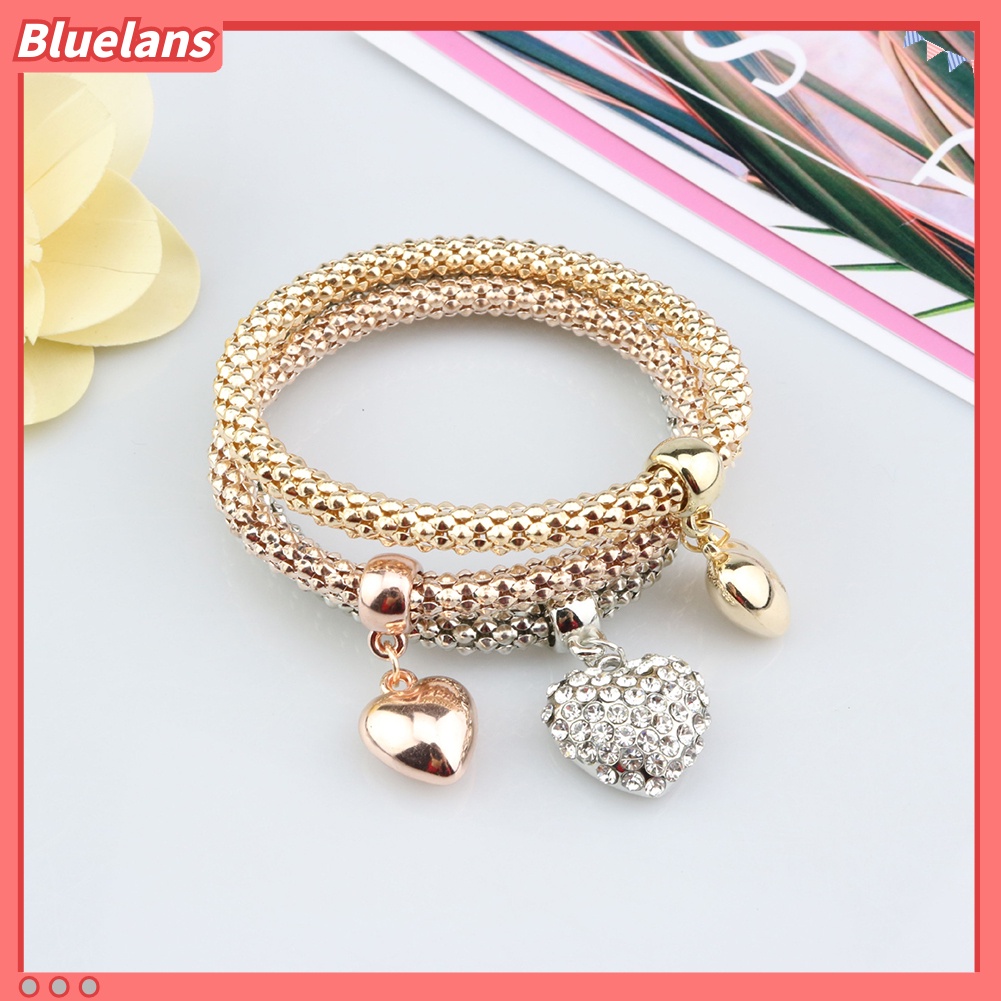 Detail [BLS] 3pcs /Set Berlian Imitasi Jantung Tangan Fatima Pesona Rantai Jagung Lady Gelang Bangle