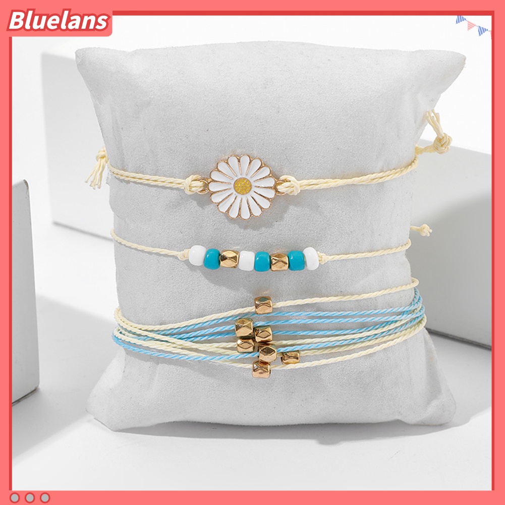 Detail [BLS] 3pcs /Set Bohemian Wanita Bunga Manik Pesona Tali Gelang Bangle Perhiasan Hadiah
