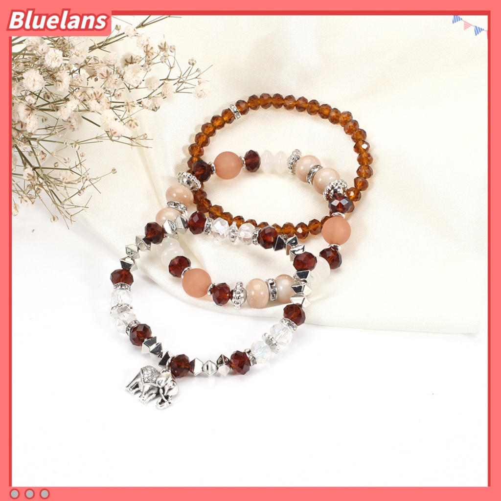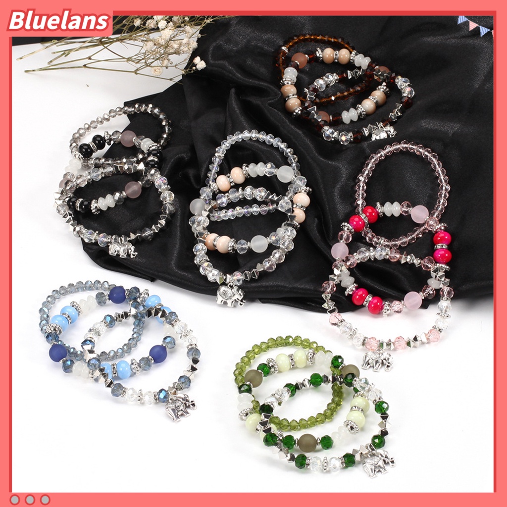 [BLS] 3pcs/set Gajah Menjuntai Tali Elastis Perempuan Gelang Multilayer Wanita Bohemia Manik-Manik Kristal Imitasi Gelang Perhiasan Aksesori