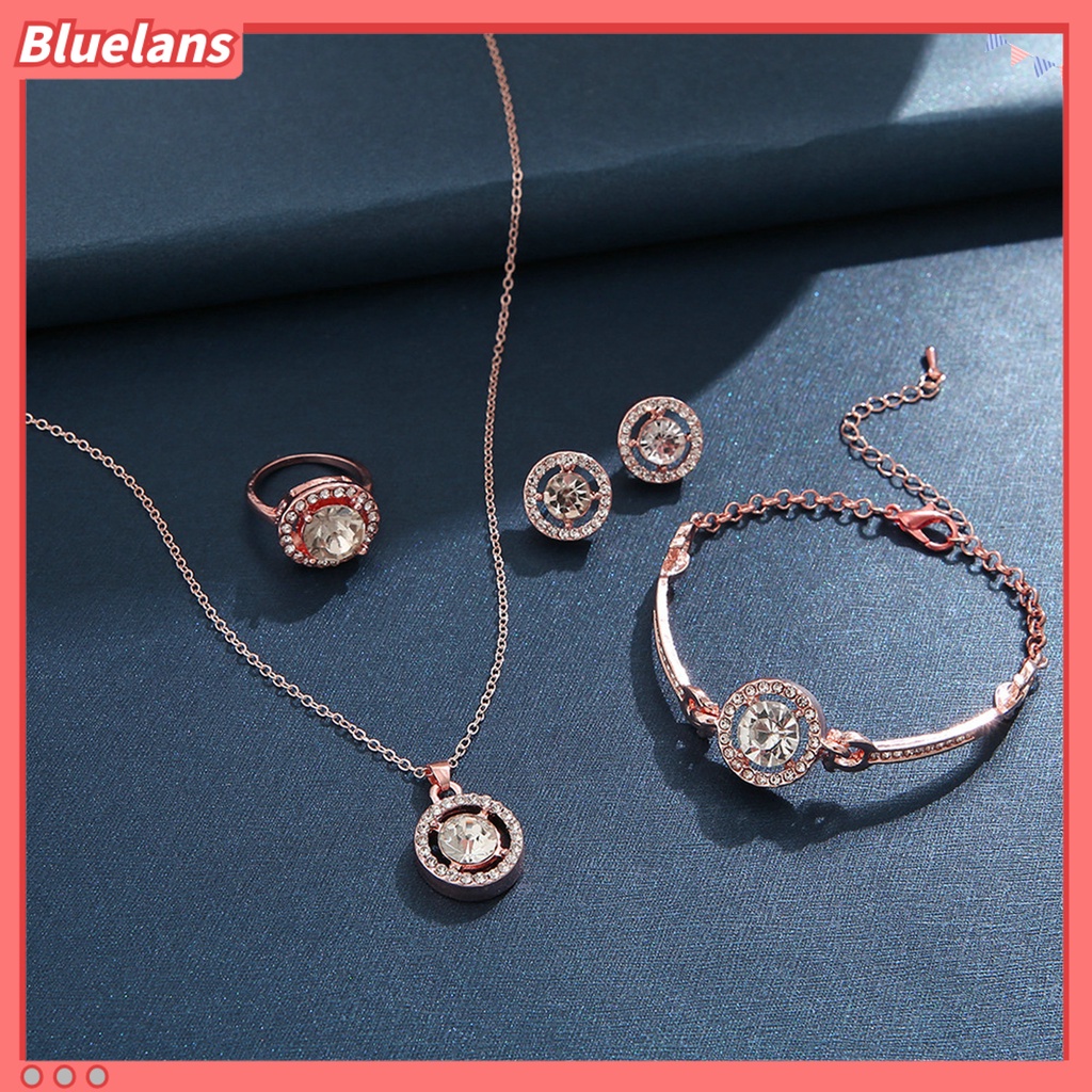 Detail [BLS] 4pcs /Set Kalung Anting Cincin Gelang Hollow Keluar Liontin Hati Perhiasan Gaya Korea Set Perhiasan Sederhana Untuk Pakaian Sehari-Hari