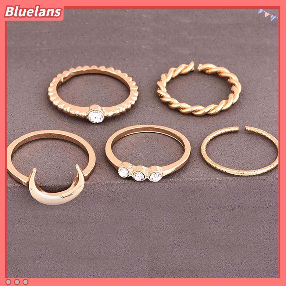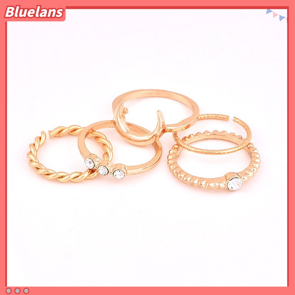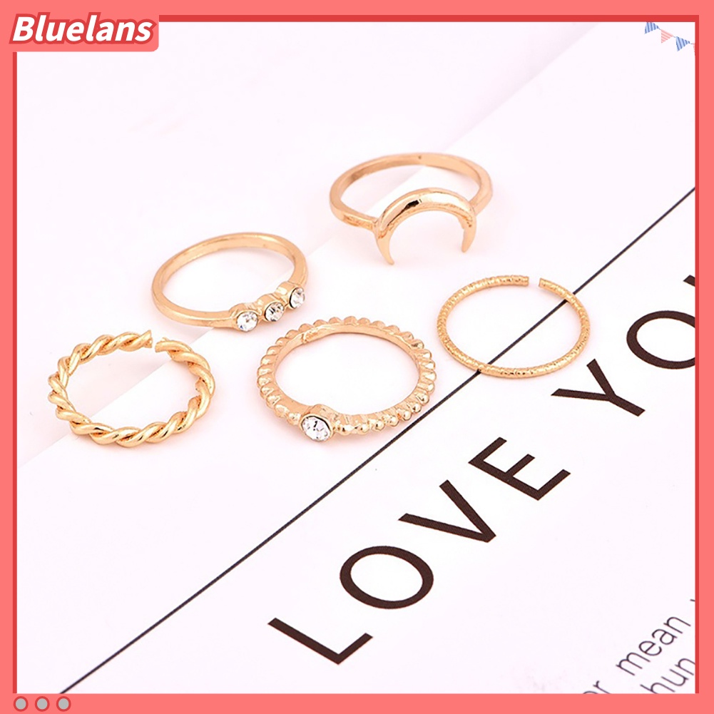 Detail [BLS] 5pcs Set Cincin Jari Buku Jari Bulan Vintage Bohemian Perhiasan Sendi Yang Dapat Disesuaikan